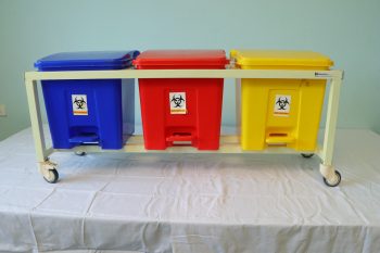 A waste segregation trolley (HF56) with multiple color-coded bins for organized and efficient waste sorting.