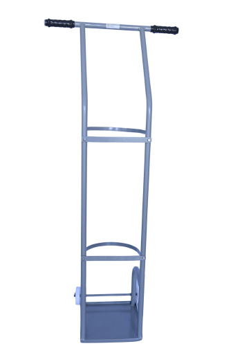 A sturdy, wheeled cart(HF63) designed for transporting and securely storing large oxygen cylinders.