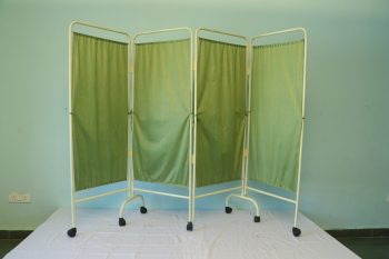 A 4-fold bedside screen(HF60) is a portable, multi-panel divider providing privacy and partitioning in medical settings.