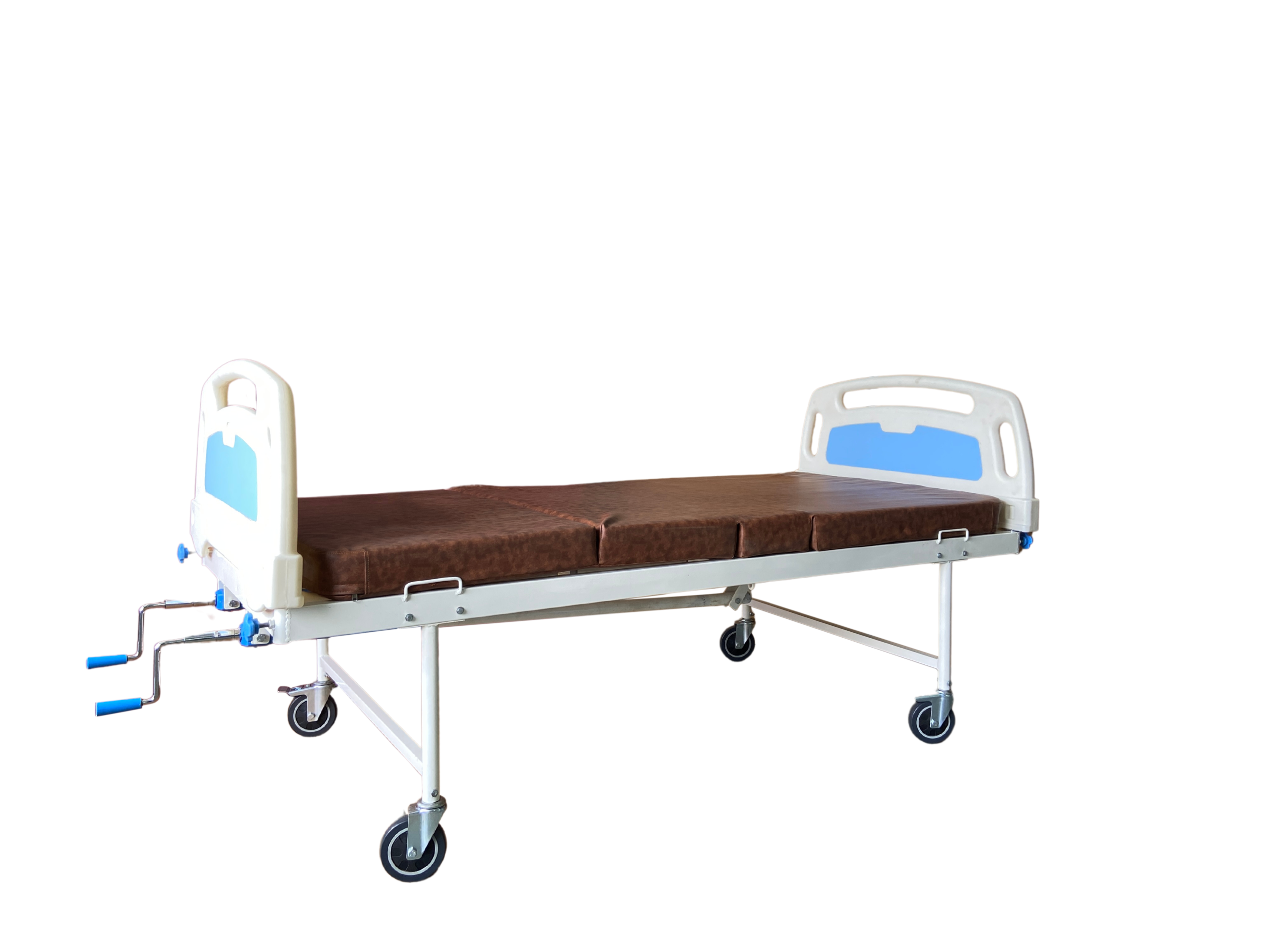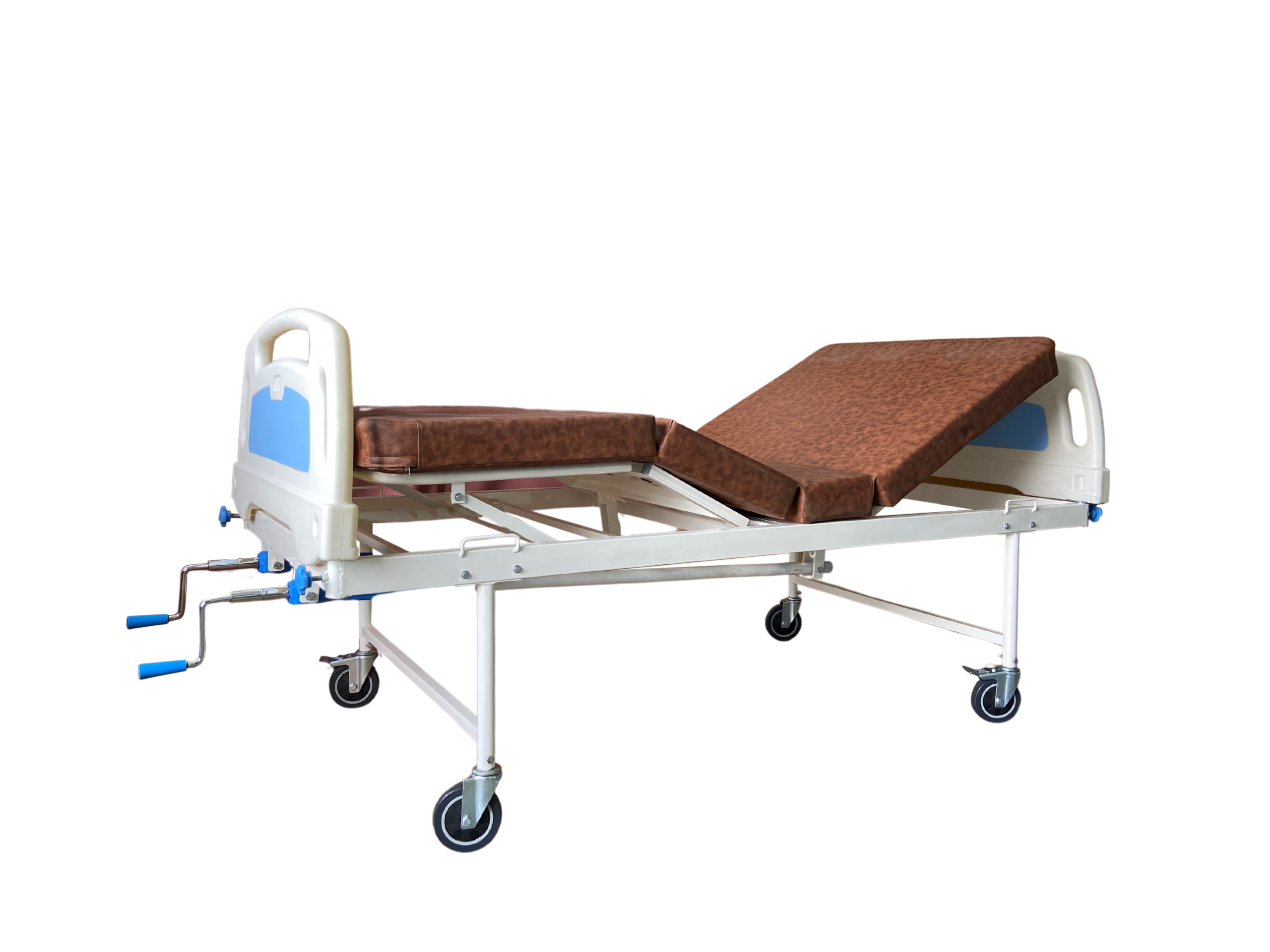 A mechanical rehab bed cum chair (HF02) lets you switch between lying and sitting positions manually for comfort and recovery.