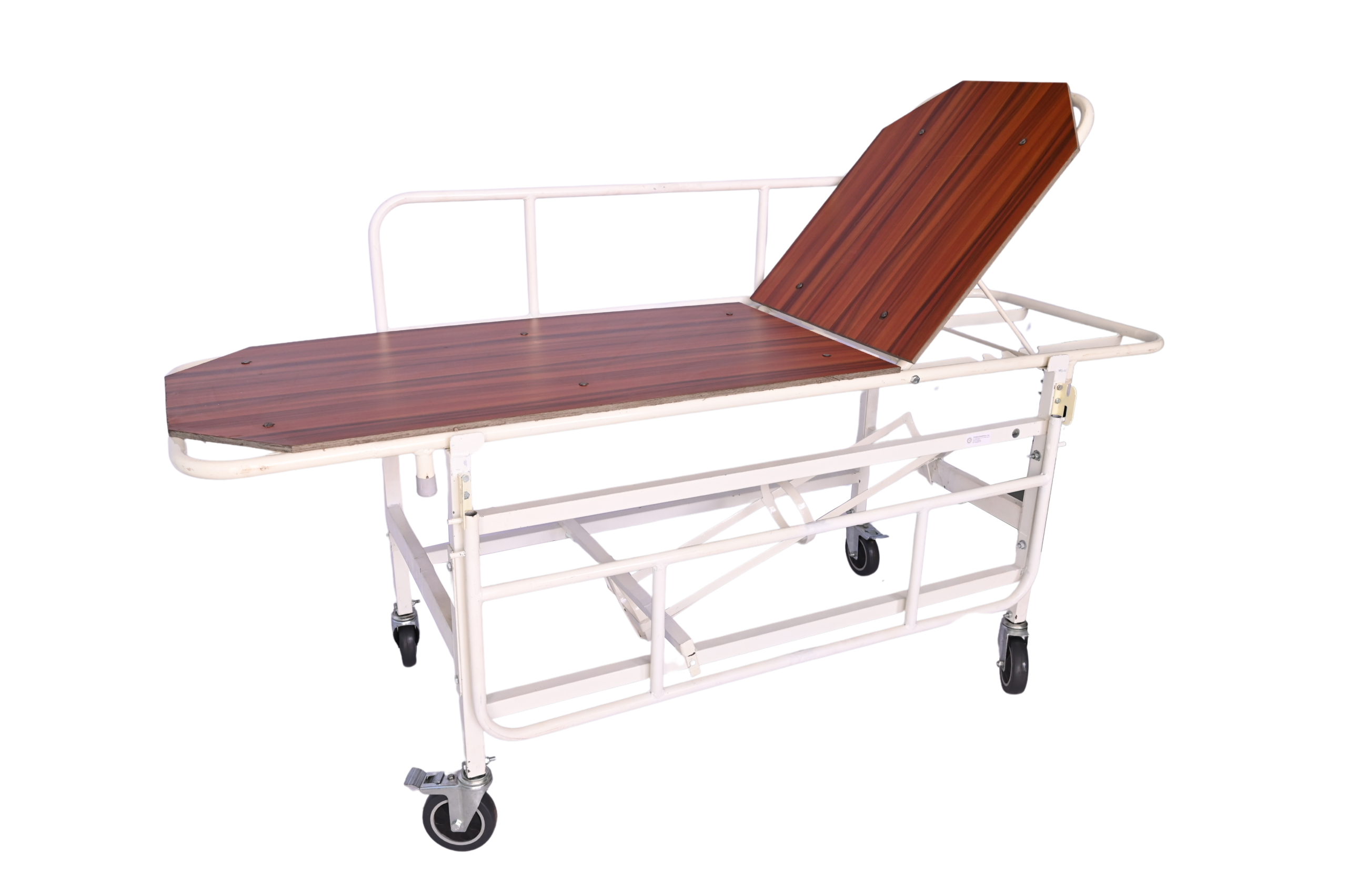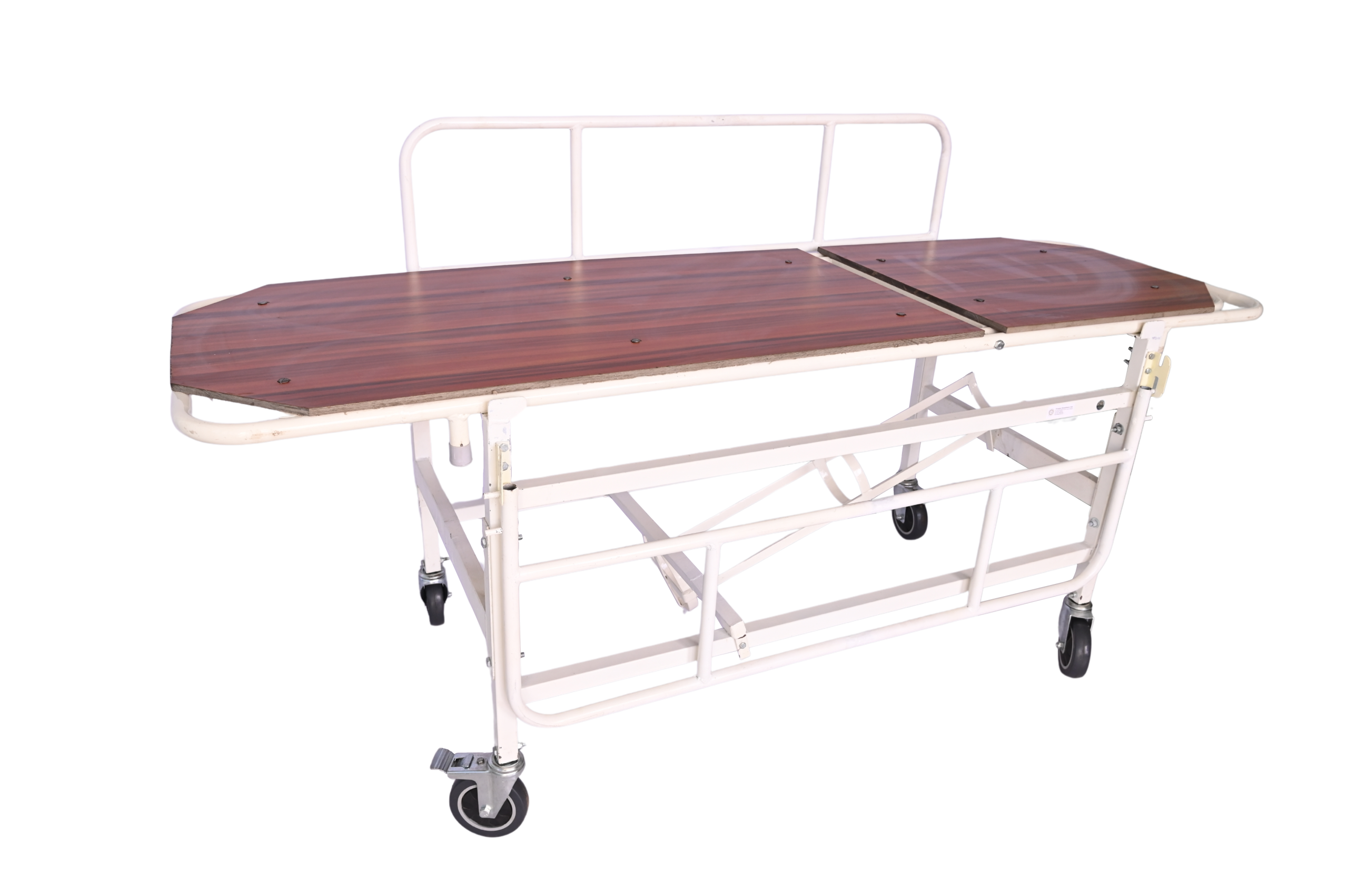 - Provided 5" castor wheel with 2 breaks and 4 nos heavy duty polymer moulded shoe for removable stretcher top.